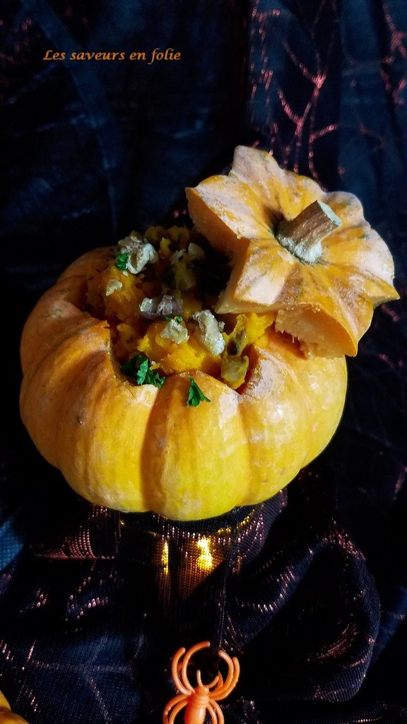 - Pour le dressage, remplir les minis citrouilles, ajouter du persil ciselé, quelques brisures de châtaignes.