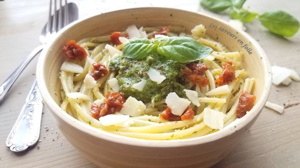 Hier je vous ai présenté mon pesto au basilic, aujourd’hui je reste dans la simplicité avec des « linguine ». Vous savez ces sortes de spaghettis plats au blé dur…une tuerie quoi…