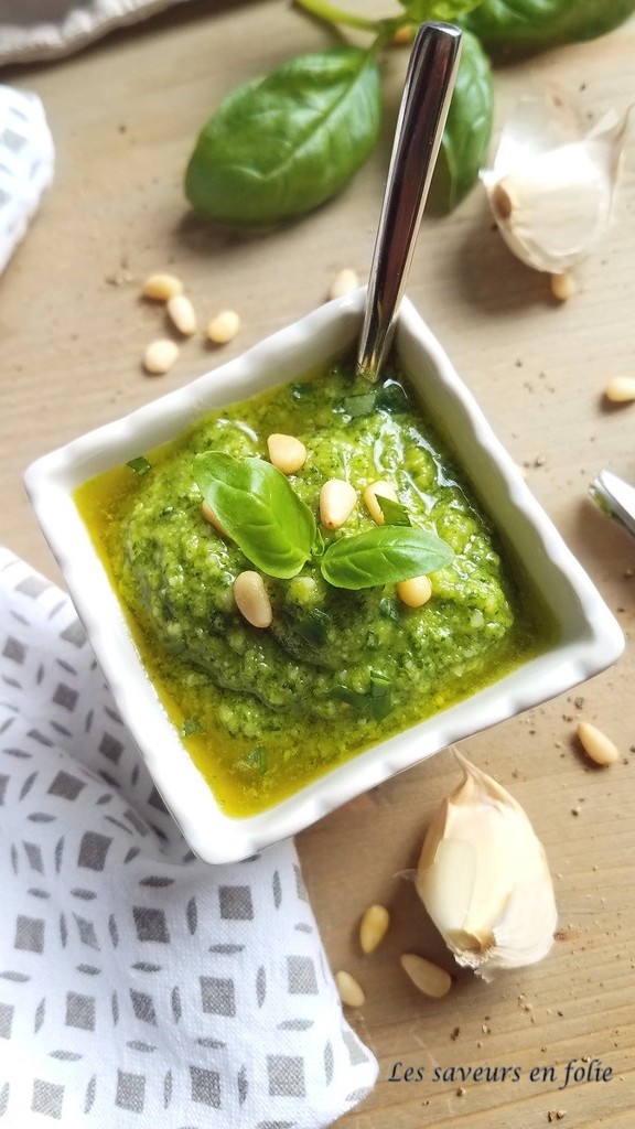 La recette est très facile, le basilic est puissant en goût, la texture du pesto est un peu granuleuse grâce au pignon de pin (il en faut c’est indéniable !). Ce qui lui permet de ne pas être trop liquide non plus, de bien accrocher et napper les pâtes. Alors n’hésitez plus !!!