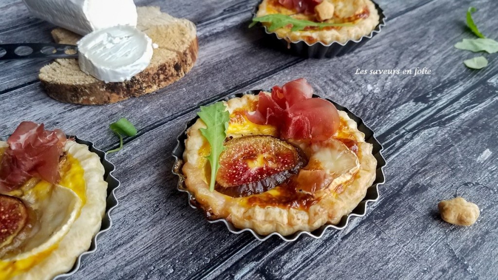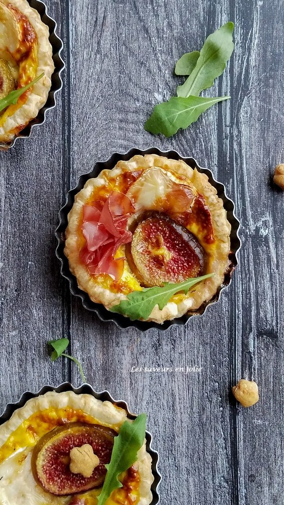 - Garnir les fonds de tarte. Commencez par 2 cuill à soupe de l’appareil crème/œuf. Répartir les échalotes dans les 6 tartelettes. Ajouter des touts petits morceaux de jambon cru. Ajouter 5 lamelles de champignons par tartelettes et 4 petits morceaux de coeur de figue. Recouvrir de 2 cuill à soupe de mélange crème œuf. Sur le dessus de chaque tartelette, déposer 1 tranche de chèvre et 1 tranche de figue.