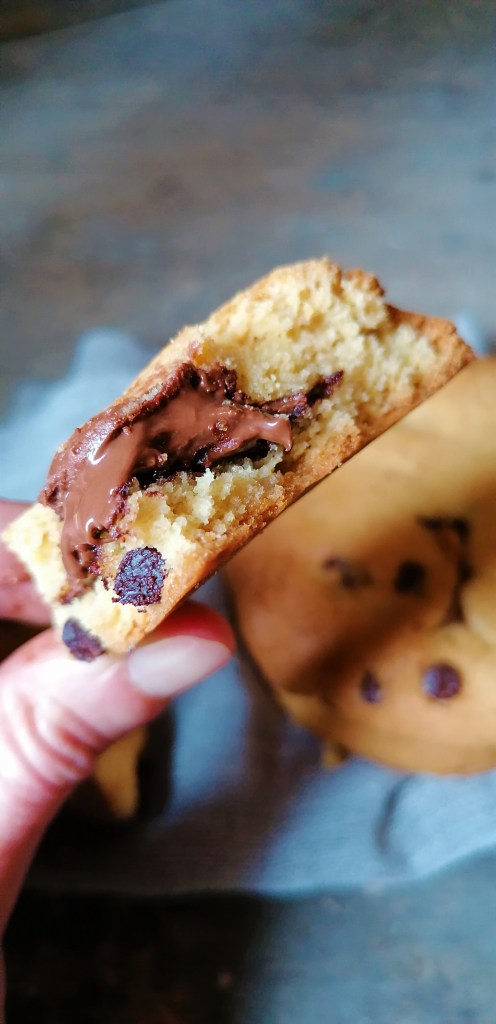 J’ai vu passer les photos sur les réseaux sociaux et notamment chez Nadine du blog Quand Nad Cuisine qui l’a elle reprise du blog de Stéphanie l’histoire d’un gâteau. Je me suis laissée tenter. Comme j’ai déjà une recette de cookies sur mon blog (ICI) je l’ai reprise pour cette recette, de même que la technique du congélateur avant la mise au four et j’ai bidouillé pour le cœur en pâte à tartiner.