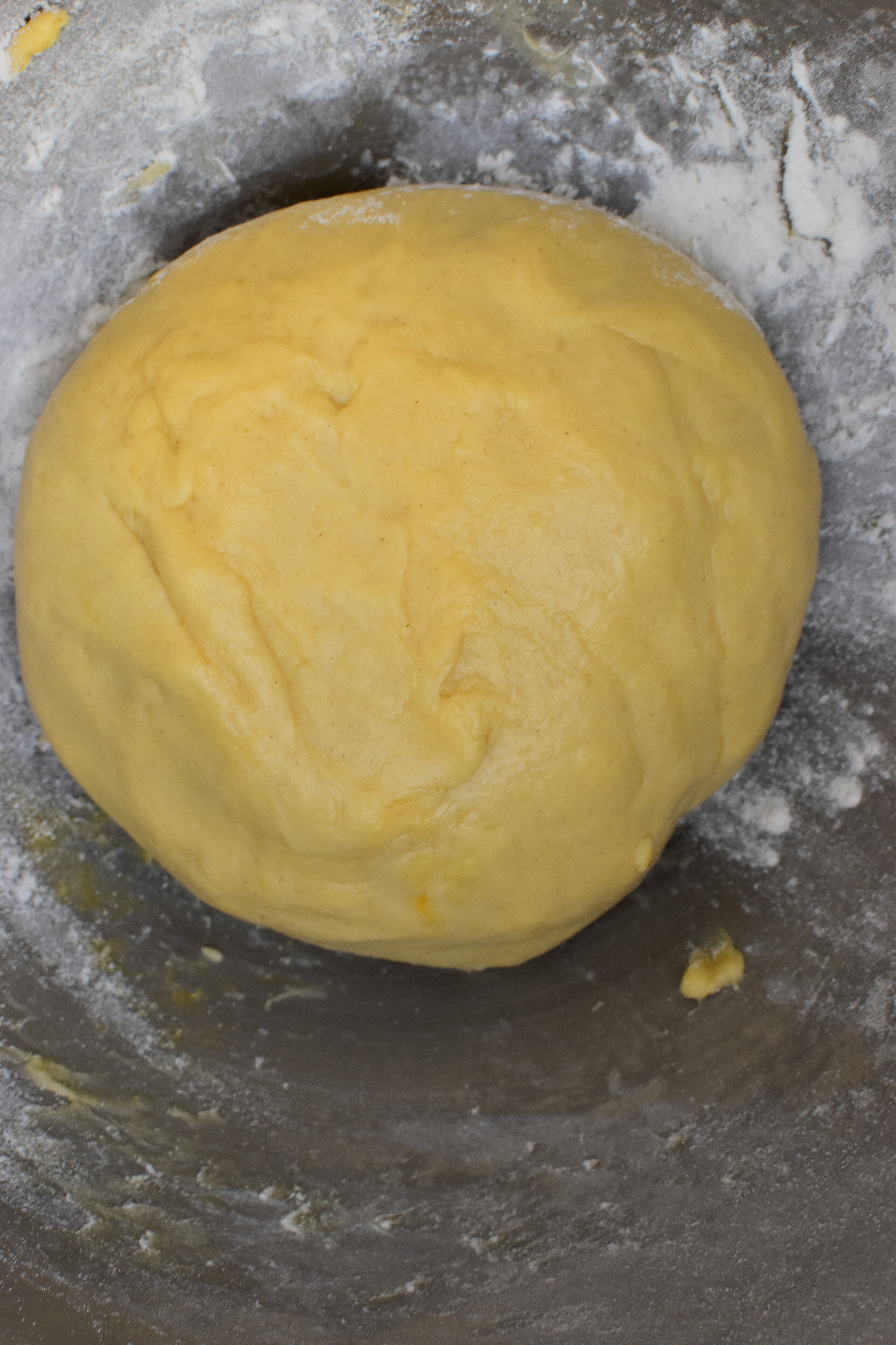 - Dans le robot muni de la feuille verser 35 gr d’oeuf, le sucre, le sel, 1/3 de farine, 1/3 de beurre pommade, ajouter le lait (levure et cannelle), mélanger à vitesse moyenne jusqu’à ce que le beurre soit incorporé.