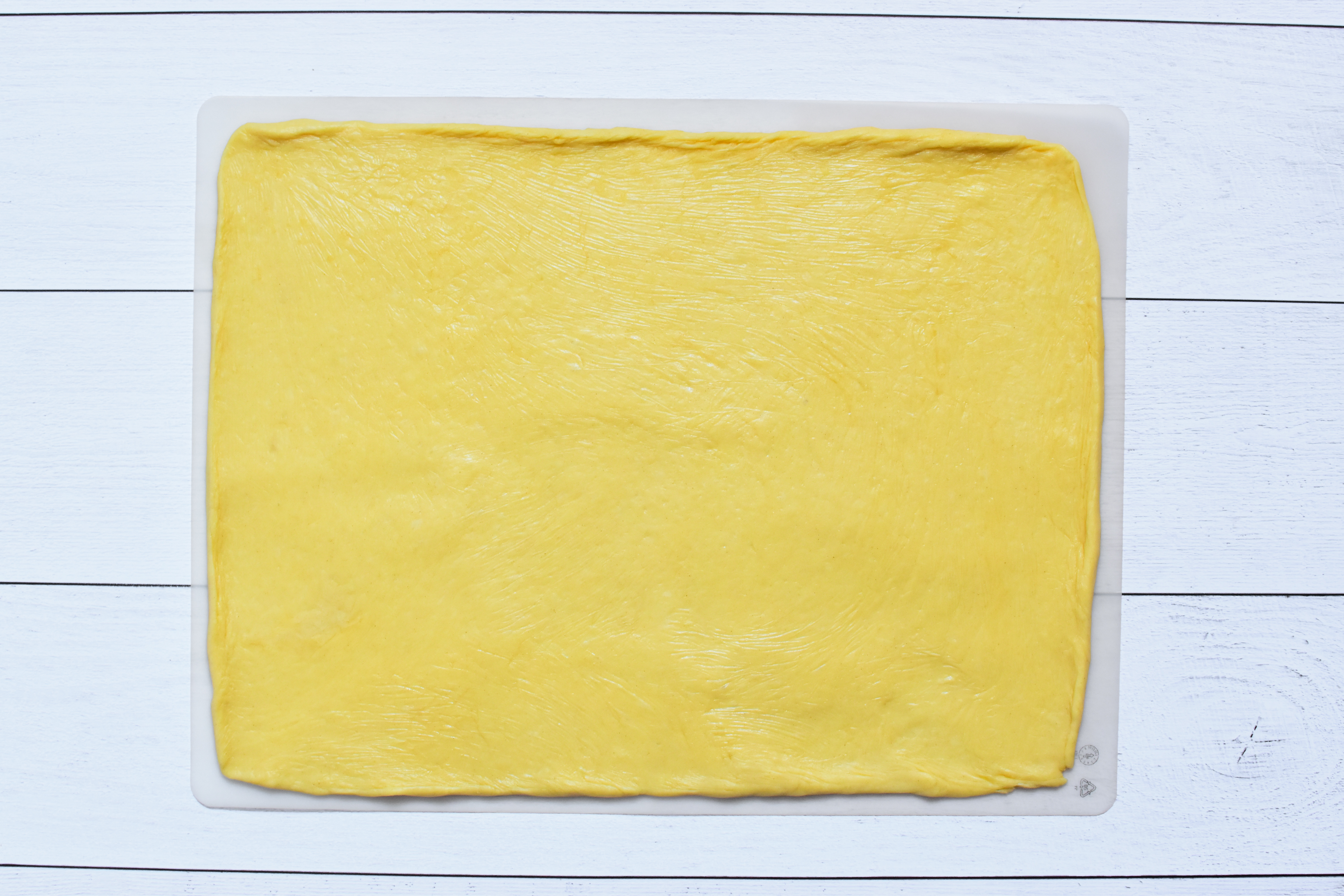 - Etaler la pâte pour former un rectangle de 30×40 cm