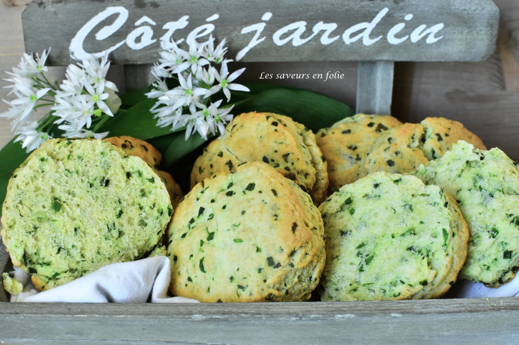 Après le pesto à l’ail des ours que j’ai utilisé pour accompagner la polenta, les crackers à l’ail des ours voici les scones à l’ail des ours.