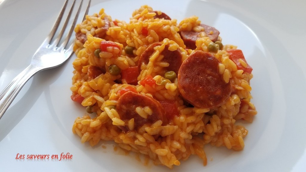 Il y a 4 jours je vous avez parlé de riz que je devais faire. Et bien j’ai ressorti mon paquet mais pour faire complètement autre chose. Il me restait du chorizo que j’avais utilisé dans ma salade printanière, quinoa, lentilles corail, chorizo, feta et pointes d’asperges vertes. Voilà de quoi agrémenter mon riz pour lui donné un côté espagnol.